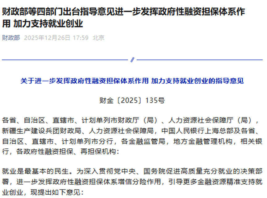 關(guān)于進(jìn)一步發(fā)揮政府性融資擔(dān)保體系作用 加力支持就業(yè)創(chuàng)業(yè)的指導(dǎo)意見(jiàn)
