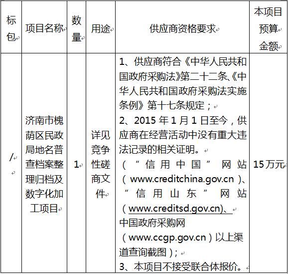 二、采購項(xiàng)目名稱:濟(jì)南市槐蔭區(qū)民政局地名普查檔案整理歸檔