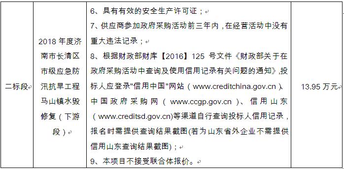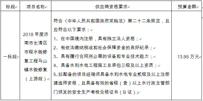 二、采購項(xiàng)目名稱:濟(jì)南市長清區(qū)馬山鎮(zhèn)人民政府水毀修復(fù)工程