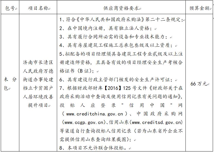 二、采購項目名稱:濟(jì)南市長清區(qū)人民政府萬德街道辦事處建檔立卡貧困戶人居環(huán)境改善提升項目
