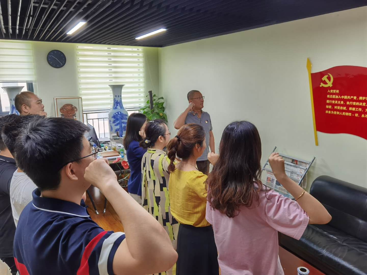 為紀念中國共產(chǎn)黨成立99周年,進一步弘揚黨的優(yōu)良傳統(tǒng),不斷增強支部凝聚力、號召力和戰(zhàn)斗力,激勵廣大黨員堅定理想信念,肩負時代使命,我支部組織全體黨員面對黨旗重溫入黨誓詞,重溫申請入黨時的思想激情和奮斗追求,回顧入黨宣誓時的莊嚴承諾和堅定決心,喚醒先進意識,增強黨性意識,以更加飽滿的熱情發(fā)揮先鋒模范作用,以更加昂揚的斗志積極踐行誓言,永葆共產(chǎn)黨員的政治本色。