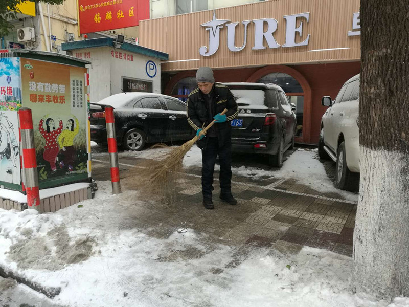 市房屋置業(yè)擔(dān)保公司領(lǐng)導(dǎo)帶領(lǐng)黨員干部職工開展積雪清掃行動