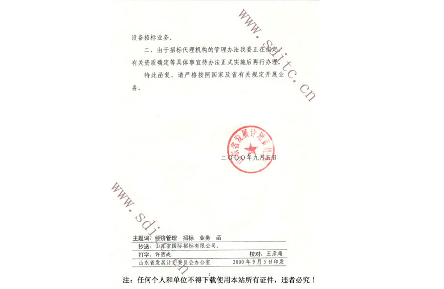 山東省發(fā)展計劃委員會文件二