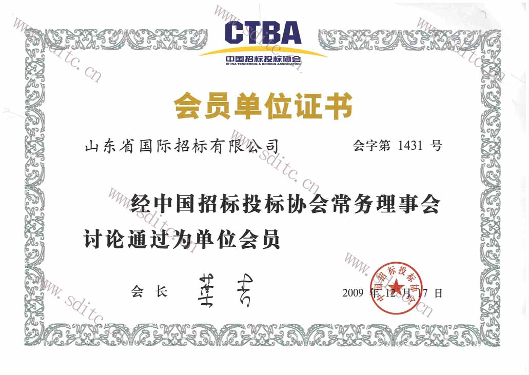 招投標協(xié)會會員單位證書