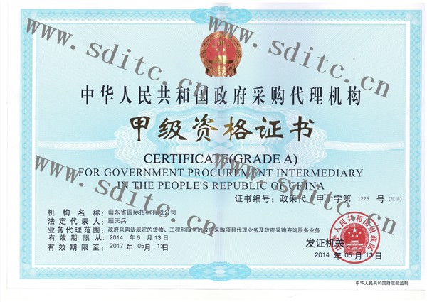 政府采購甲級證書