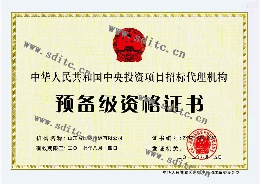 中央投資項目招標代理機構預備級資格